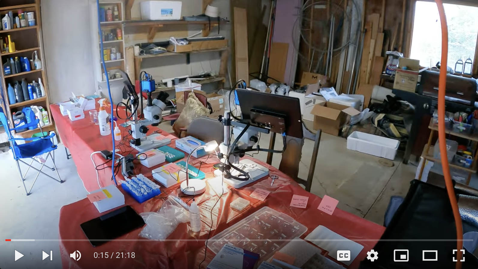 This screenshot shows the disassembly line, seen in the YouTube video from Dr. Andrew Hendry starring Dr. Dan Bolnick and the disassembly team in Alaska from summer 2023.